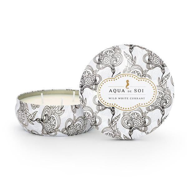 Fill your home with the luxurious blends of Aqua De Soi Candles. Each Aqua De Soi candle is hand poured using only the finest ingredients and fragrance oils available. Our candles are made of 100% premium soy oil and all were inspired by the passion for fragrance love of exotic travel and strive for clean living. The Wild White Curant 21oz triple wick candle is made up of a savory blend of tart red & golden currants and golden fruit glaze ladled over coarsely ground vanilla bean and raspberry zest.