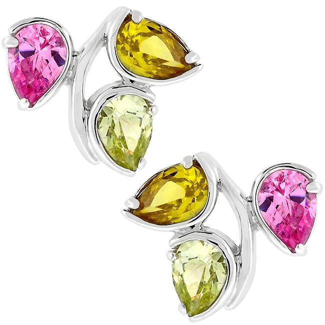 Three stones in leaf shapes cluster together in this feminine stud earring piece. Our genuine rhodium finish is achieved using an electroplating process that coats the item with heavy layers of rhodium a close cousin to platinum which gives our jewelry a platinum luster.