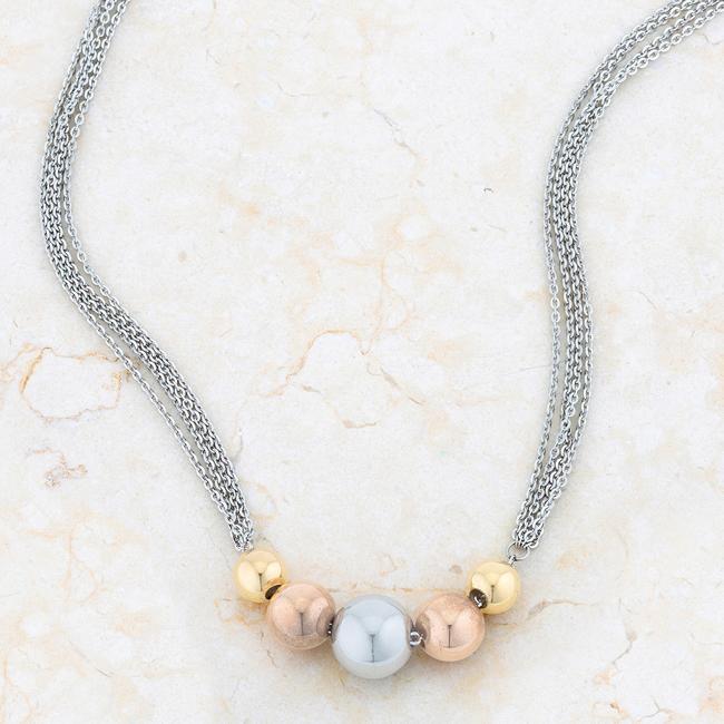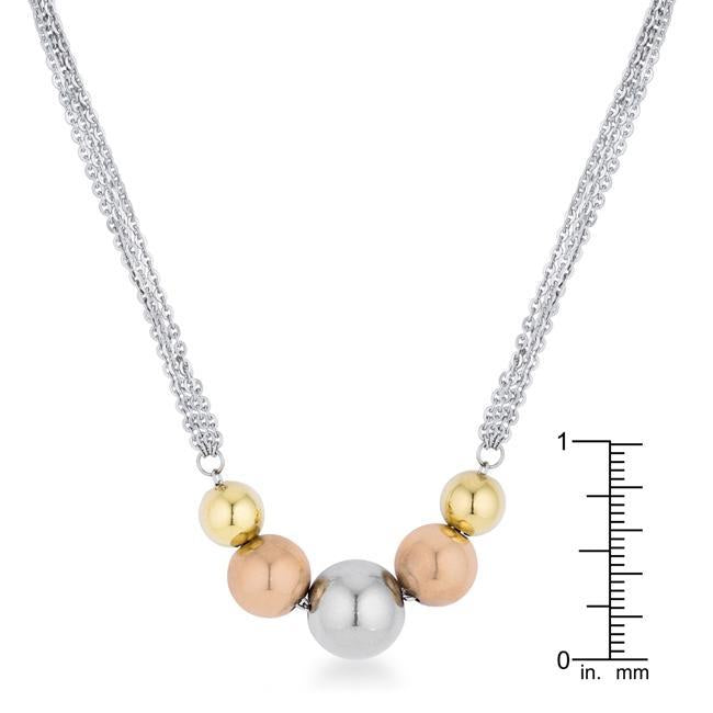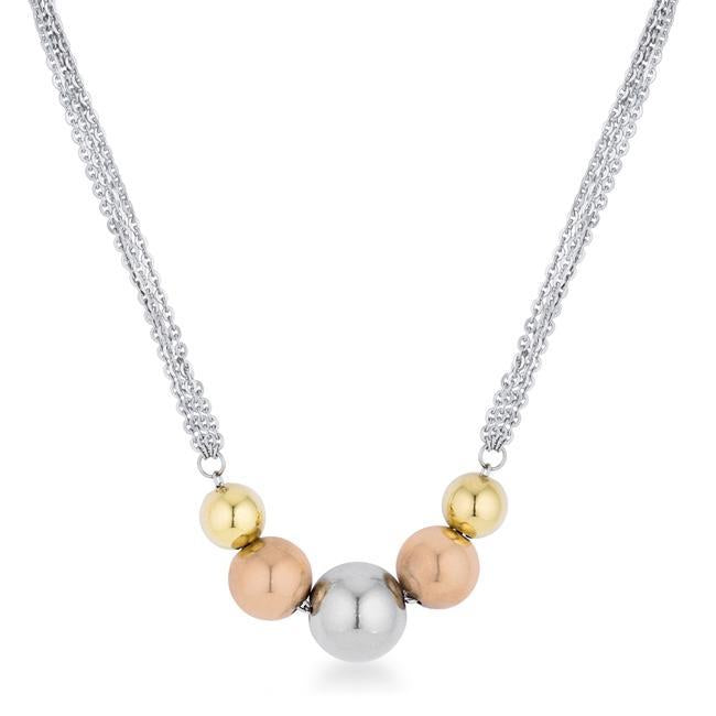Bella Tri-Tone Stainless Steel Layered Ball Statement Necklace