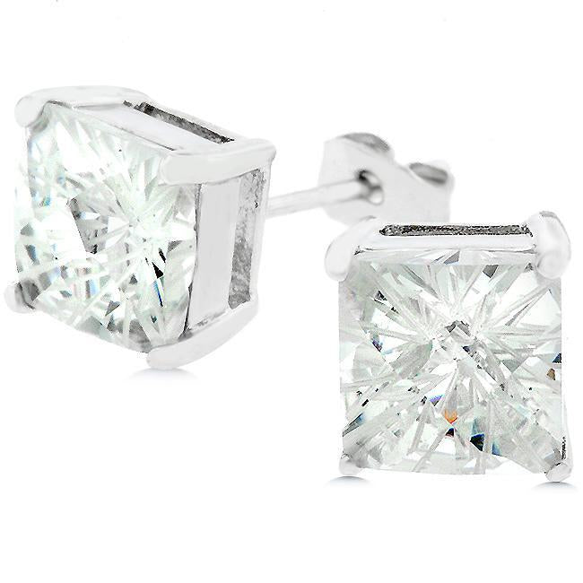 Don a classic ladylike look with these princess cut stud earrings. Our genuine rhodium finish is achieved using an electroplating process that coats the item with heavy layers of rhodium a close cousin to platinum which gives our jewelry a platinum luster.