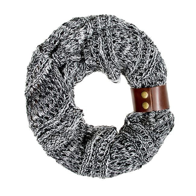 Lightweight knitted fabric is secured with leather details in this versatile cowl scarf. Our scarf selection is stylishly designed without sacrificing comfort. We offer different choices of fabric color and style. Browse our selection and youll definitely find your unique look.