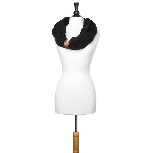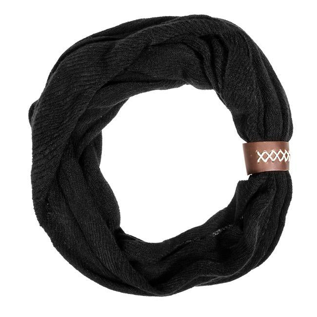 Lightweight knitted fabric is secured with leather details in this versatile cowl scarf. Our scarf selection is stylishly designed without sacrificing comfort. We offer different choices of fabric color and style. Browse our selection and you will definitely find your unique look.