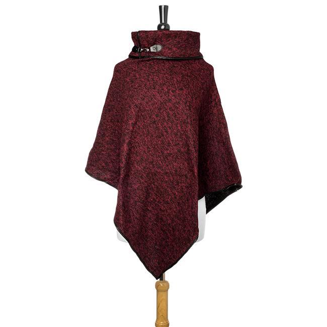 Brown leather buckles secure the top of a warm knitted poncho. Equal parts bold and sophisticated. Our scarf selection is stylishly designed without sacrificing comfort. We offer different choices of fabric color and style. Browse our selection and youll definitely find your unique look.