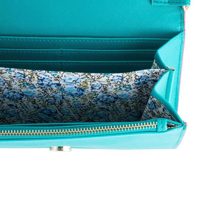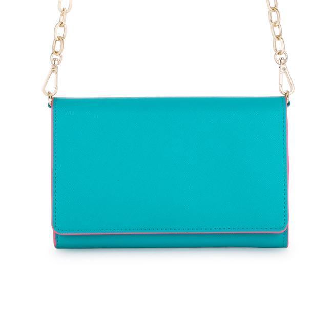 Carly Teal Leather Purse Clutch With Gold Chain Crossbody