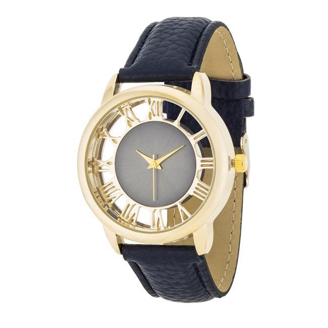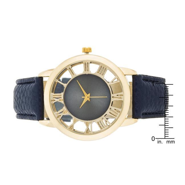 Cecelia Gold Boyfriend Watch With Navy Blue Leather Band