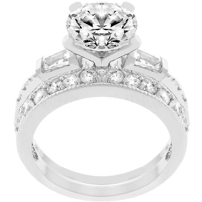 Elegant craftsmanship makes this ring a fashion treasure. Pave cubic zirconia and a 3 carat center stone are put together very well to leave a lasting impression. Genuine Rhodium Plating is achieved using an electroplating process that coats the item with heavy layers of rhodium a close cousin to platinum which gives our jewelry a platinum luster.