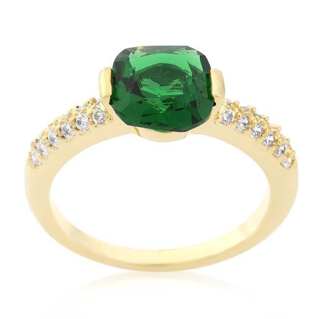 Feminine and elegant. Simple and sophisticated. Fashioned in luminous cubic zirconia this engagement ring is a lovely addition to any collection. 18k plated gold is achieved using an electroplating process that coats the item with heavy layers of 18k Yellow Gold and color-treated to display a perfect 14k Hamilton gold color.