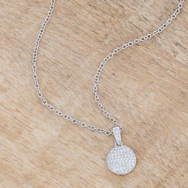 Lovely Rhodium Necklace with CZ Disk Pendant
