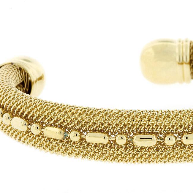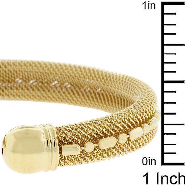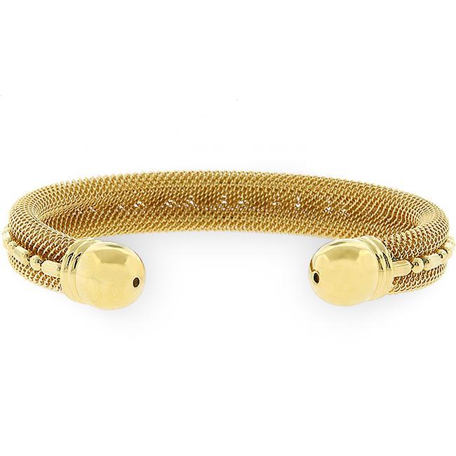 Modern and stylish this gold tone Modern Mesh Cuff will keep your jewelry closet super fresh. 18k plated gold is achieved using an electroplating process that coats the item with heavy layers of 18k Yellow Gold and color-treated to display a perfect 14k Hamilton gold color.
