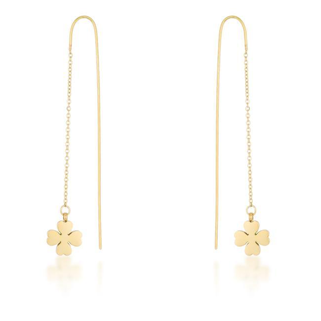 Patricia Gold Stainless Steel Clover Threaded Drop Earrings