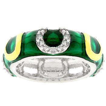 Stunning cubic zirconia horseshoes make up this western enamel two-tone ring. Genuine Rhodium Plating is achieved using an electroplating process that coats the item with heavy layers of rhodium a close cousin to platinum which gives our jewelry a platinum luster.