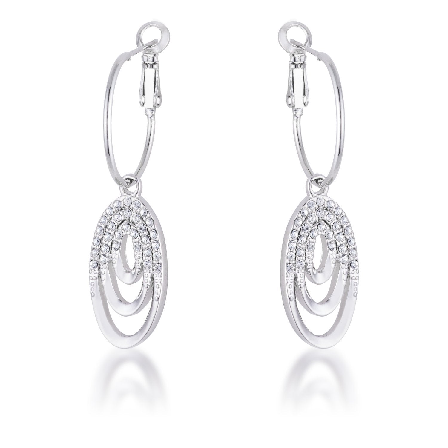Rhodium Plated Multi Ring Elegant Oval Clear Crystal Drop Earring