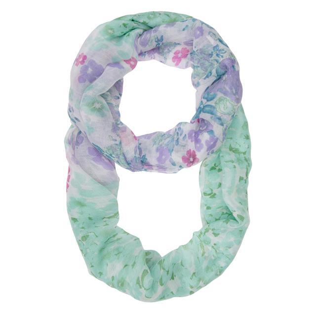 Delicate florals accent a meadow-inspired design in this feminine infinity scarf. Our scarf selection is stylishly designed without sacrificing comfort. We offer different choices of fabric color and style. Browse our selection and youll definitely find your unique look.