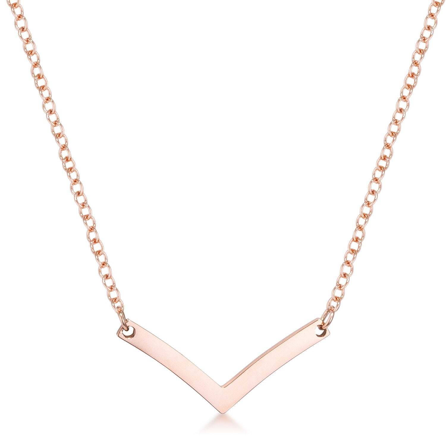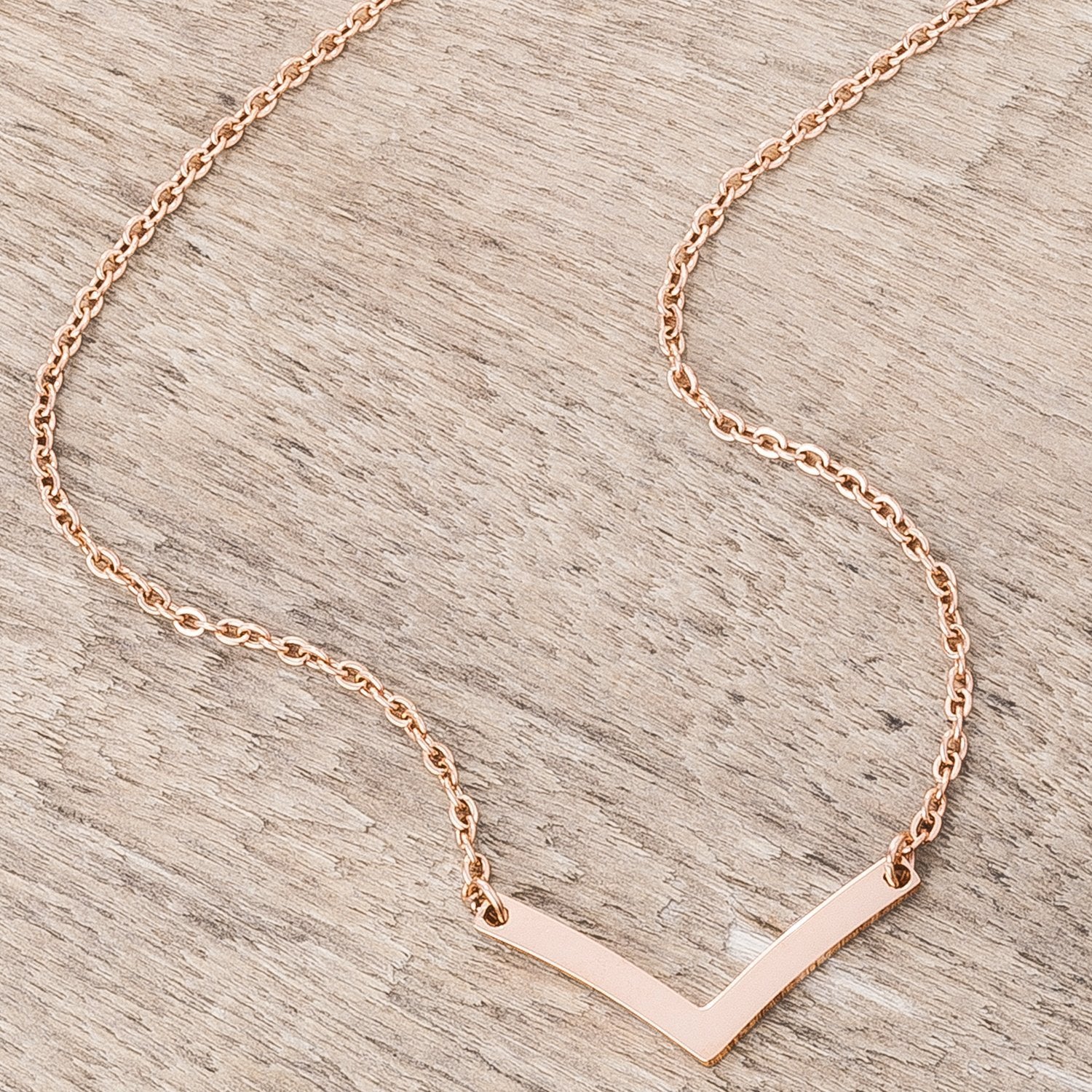 Stainless Steel Rose Goldtone Chevron Necklace.