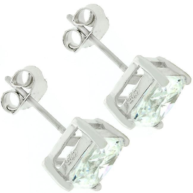 Sterling Silver Princess Cut Stud Earrings