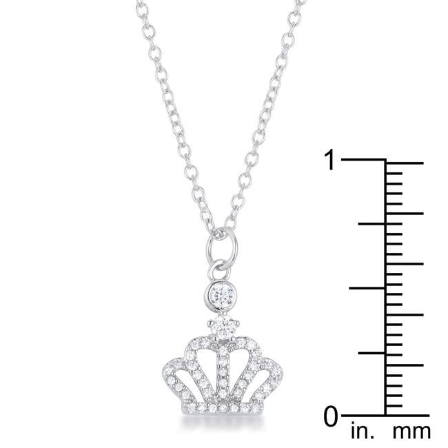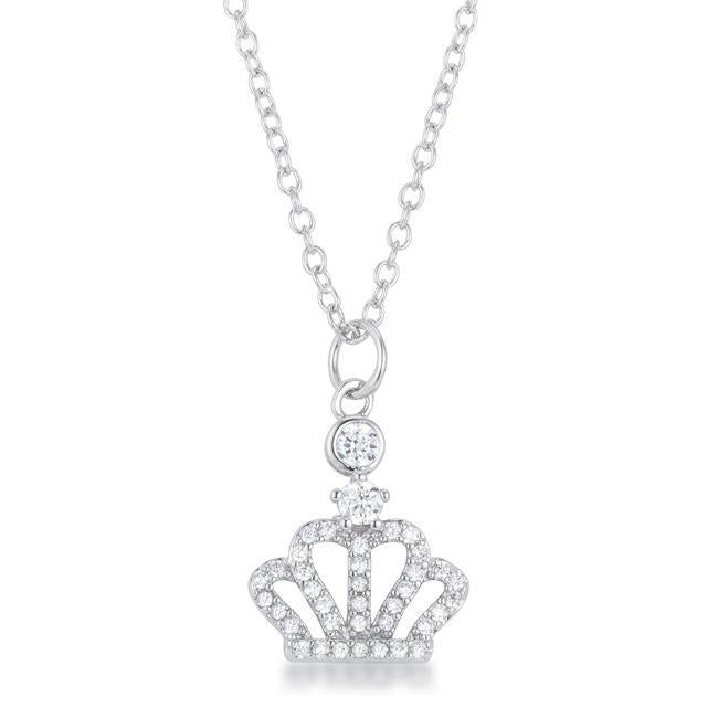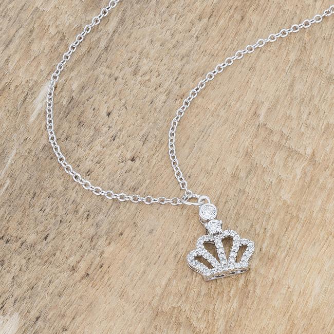 This rhodium-plated pendant features a beautiful pave cz crown which is fused by two bezeled levels of czs. It also comes with a rhodium-plated 16 necklace with a 2 extender.