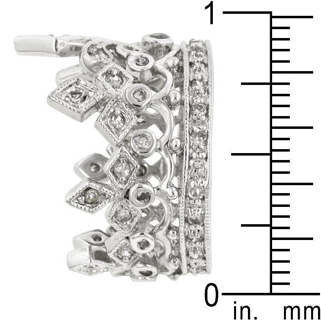 The Theodora Bridal Set features a gorgeous princess cut cubic zirconia framed with channel set small round cut clear cubic zirconia on a double band of even more cubic zirconia. A second ring in between a single row of channel set small clear round cut cubic zirconia completes this set. Genuine Rhodium Plating is achieved using an electroplating process that coats the item with heavy layers of rhodium a close cousin to platinum which gives our jewelry a platinum luster.