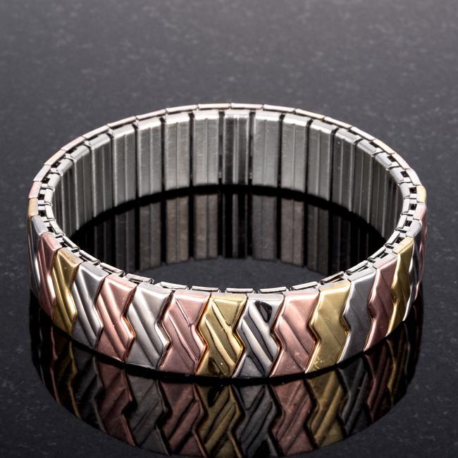 Tritone Zig-Zag Stainless Steel Stretch Bracelet