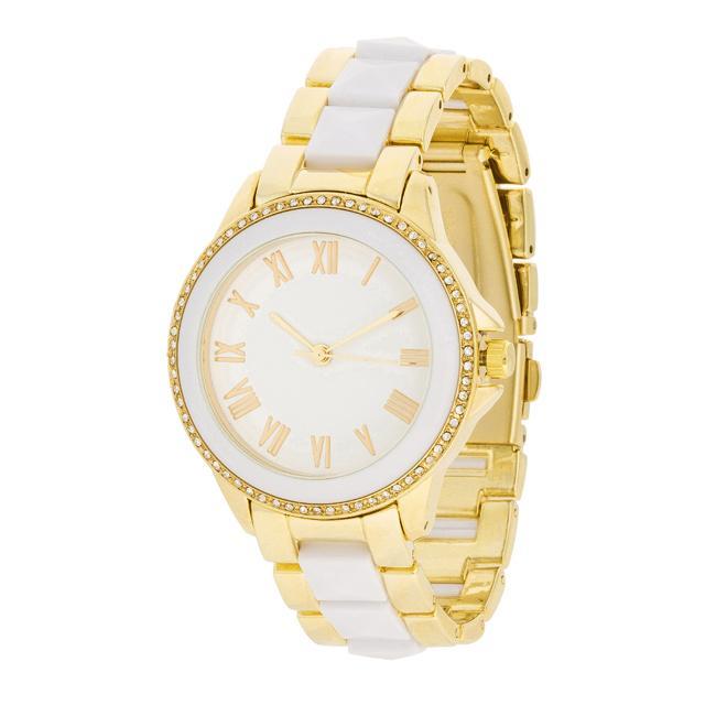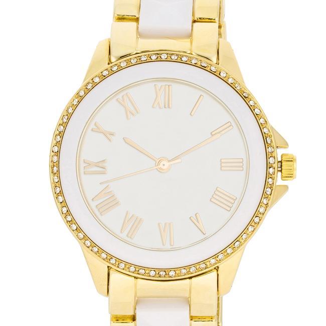 White And Gold Metal Crystal Watch